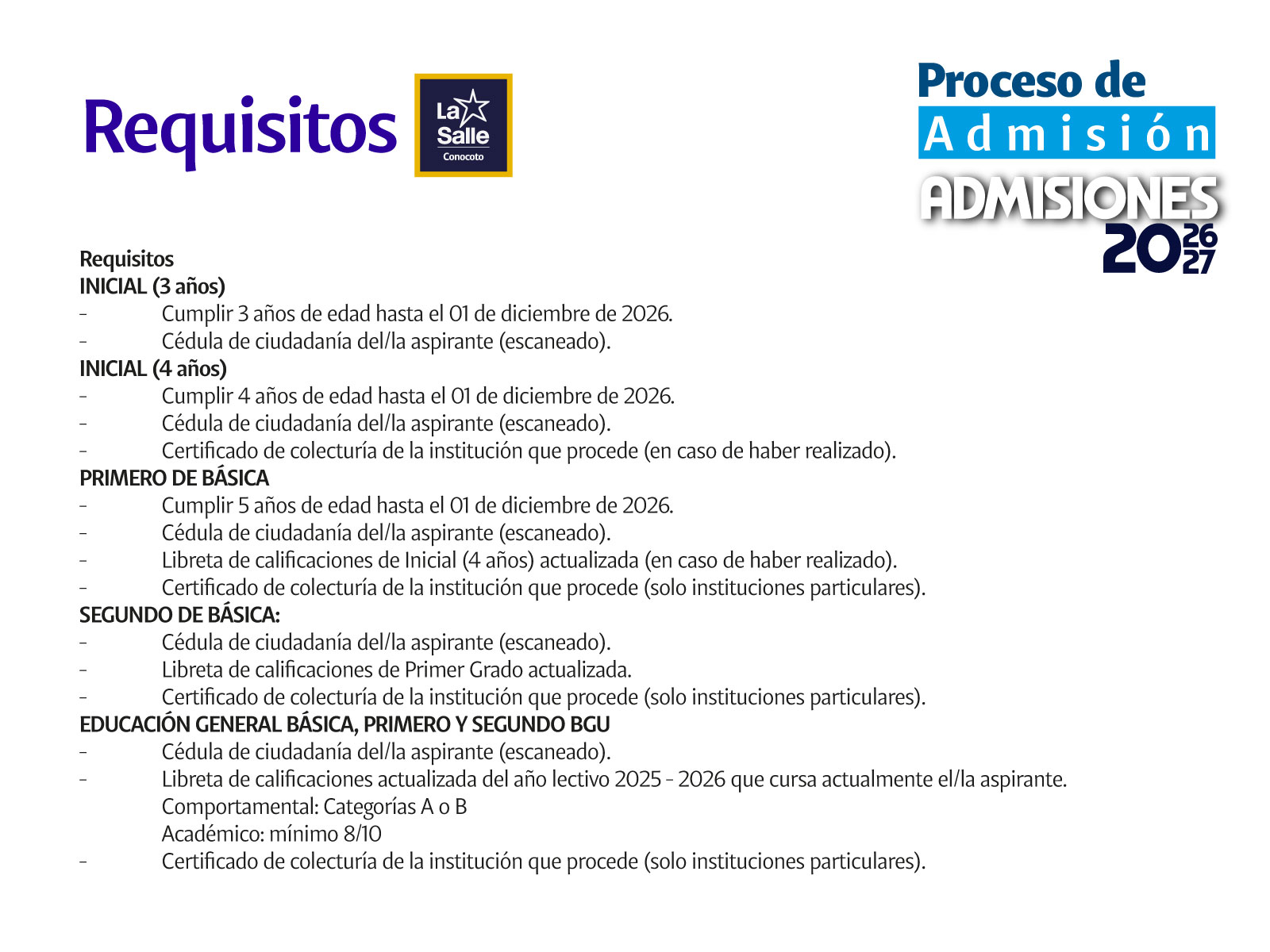 NOTA: Los valores de matrícula y pensión puede variar para el Periodo Lectivo 2026-2027.