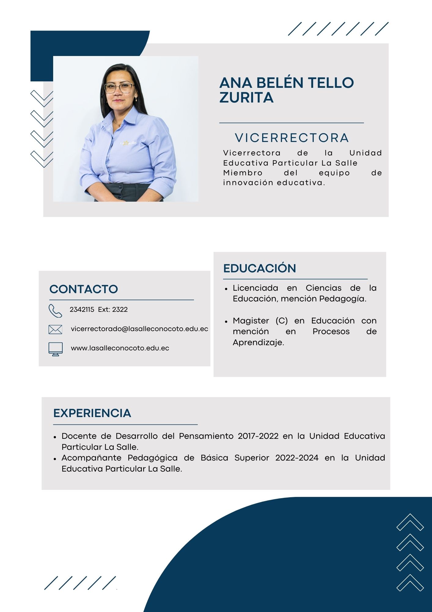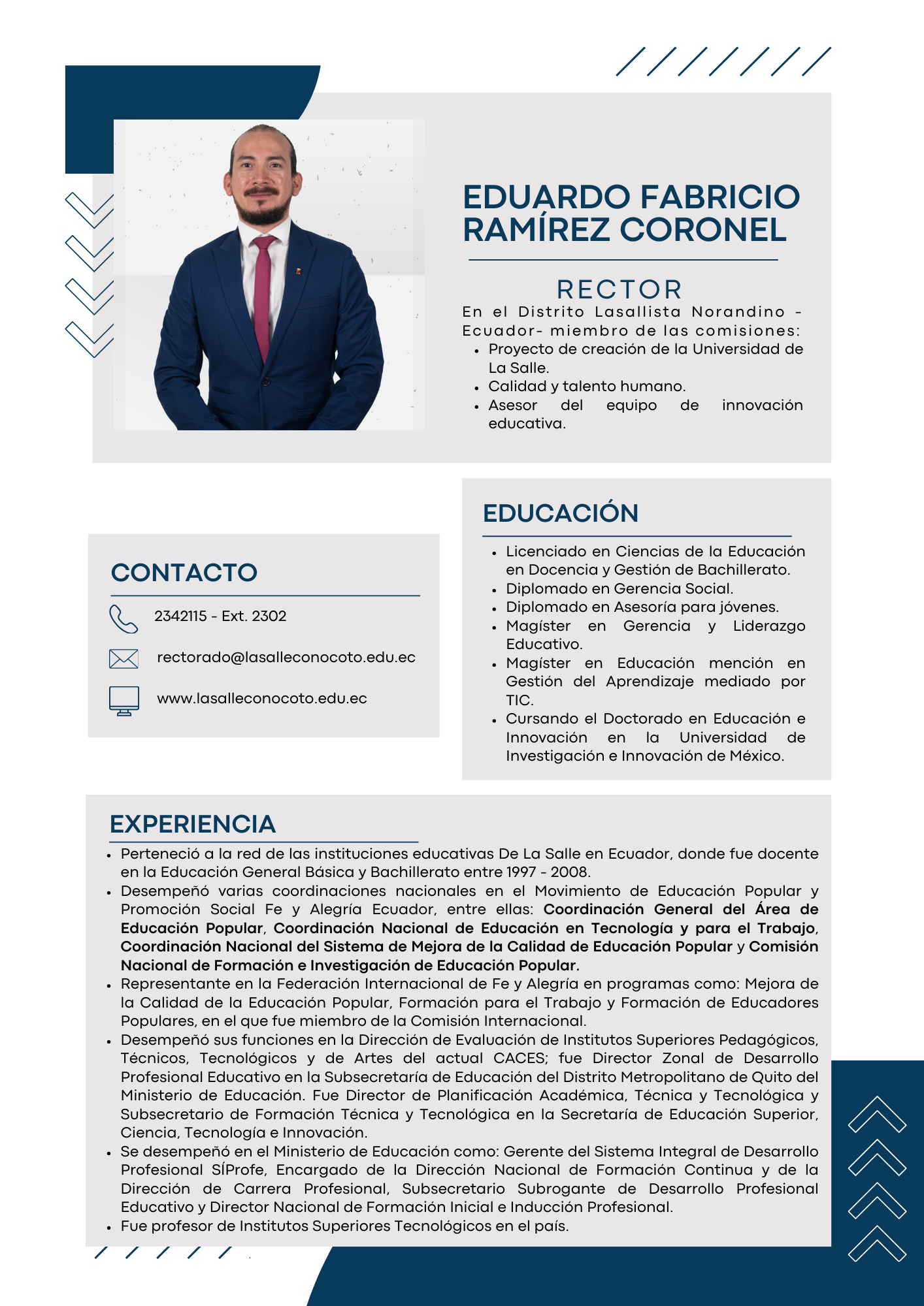 Como custodios de la misión lasalallista, asumen con responsabilidad la fortalecer los aprehendizajes fundacionales que unen a la comunidad educativa, liderando con el ejemplo e inspirando tanto a estudiantes como a colaboradores. Además, ejercen un liderazgo pedagógico activo, promoviendo una educación de calidad que estimula el pensamiento crítico, la creatividad y el respeto por la dignidad de cada persona. Todo ello, orientado hacia el logro de la formación humana y cristiana de la institución.