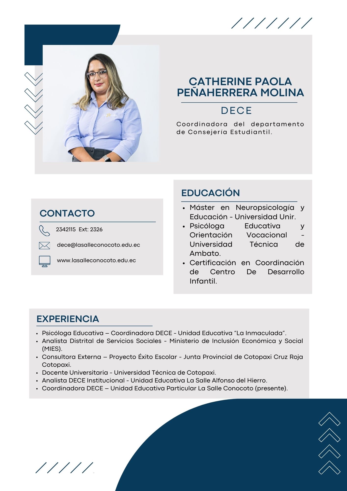 Como custodios de la misión lasalallista, asumen con responsabilidad la fortalecer los aprehendizajes fundacionales que unen a la comunidad educativa, liderando con el ejemplo e inspirando tanto a estudiantes como a colaboradores. Además, ejercen un liderazgo pedagógico activo, promoviendo una educación de calidad que estimula el pensamiento crítico, la creatividad y el respeto por la dignidad de cada persona. Todo ello, orientado hacia el logro de la formación humana y cristiana de la institución.